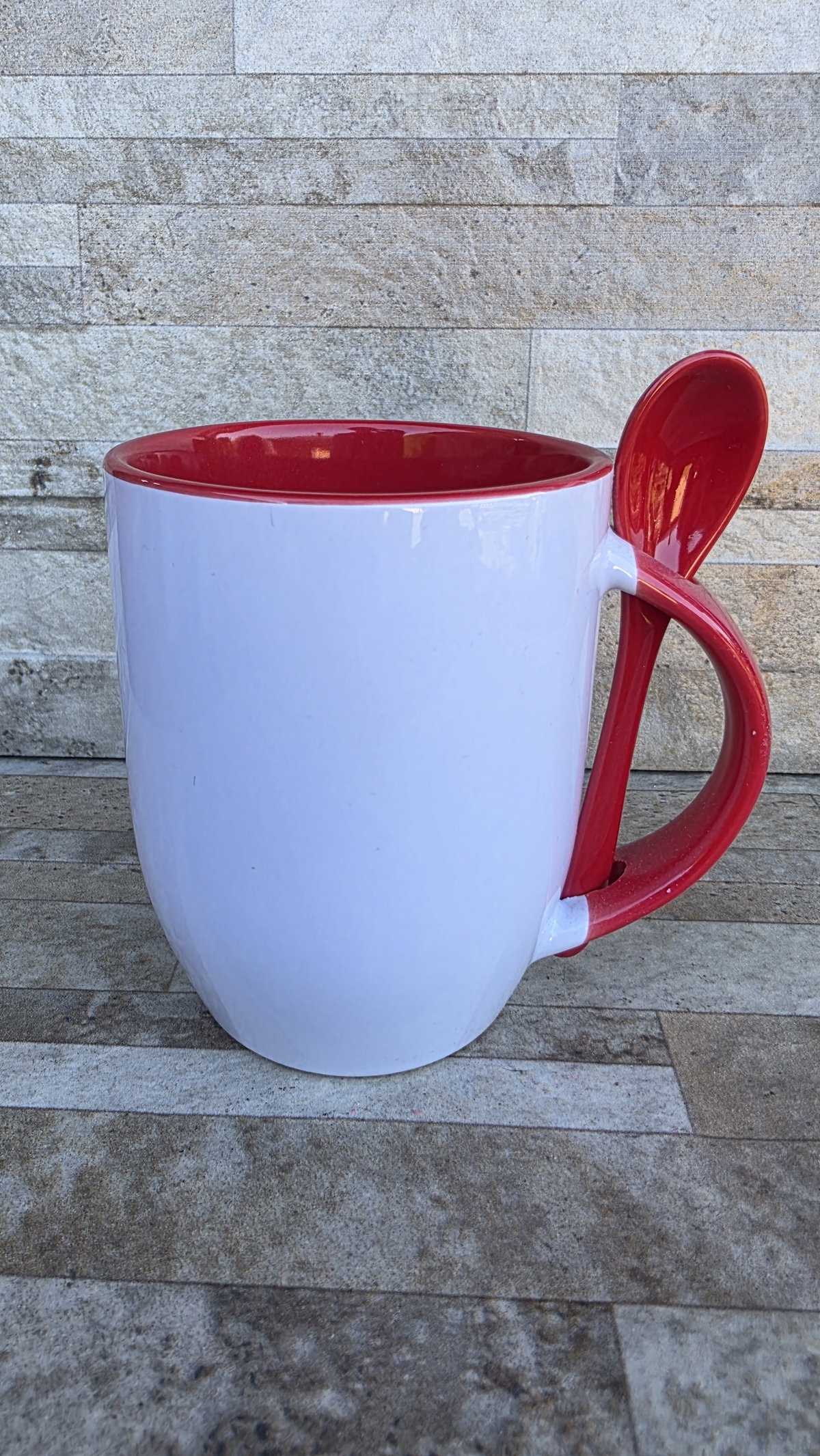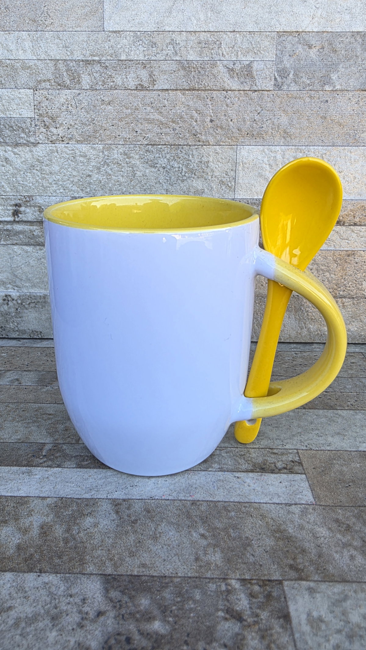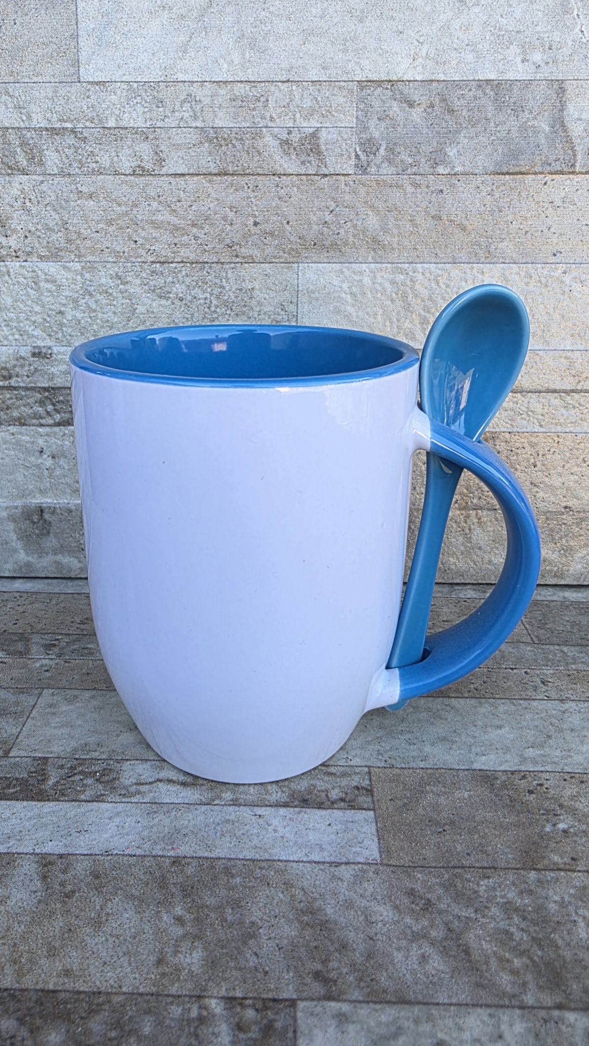 Taza interior color con cucharita haciendo juego