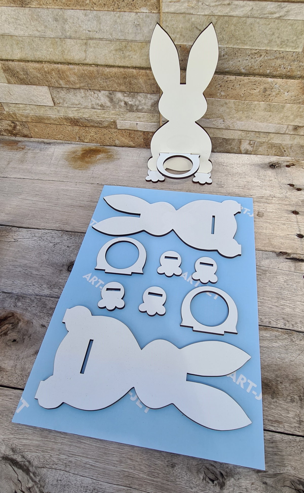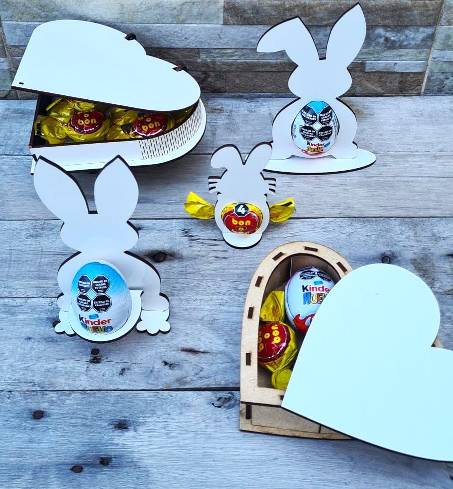 CONEJO en Madera brillante SUBLIMABLEpara colocar bombones huevos KINDER o similares en tamañoaltura máxima 19cmentran 2 figuras x hoja A4